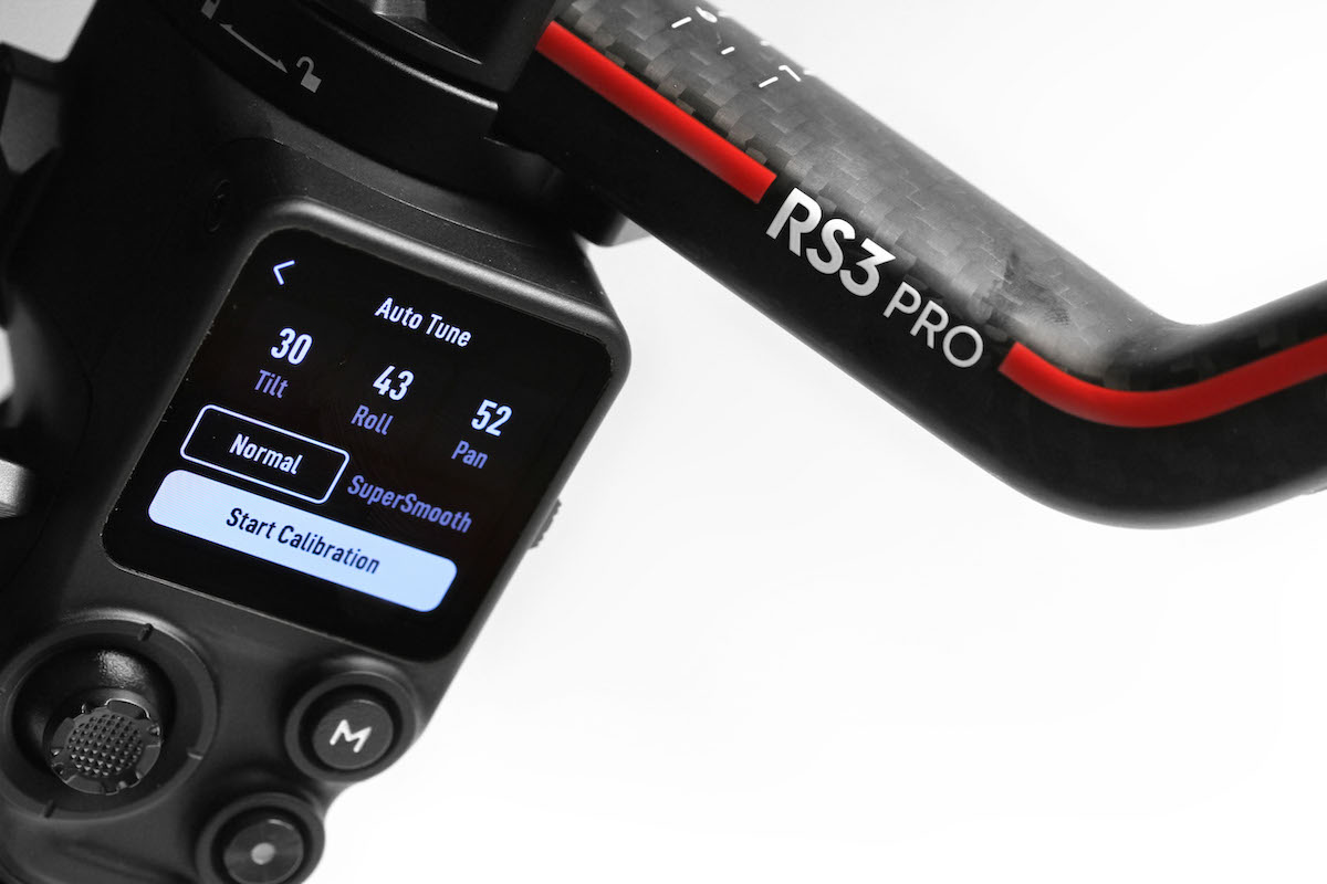 DJI RS 3 Pro gimbal OLED screen and controls.